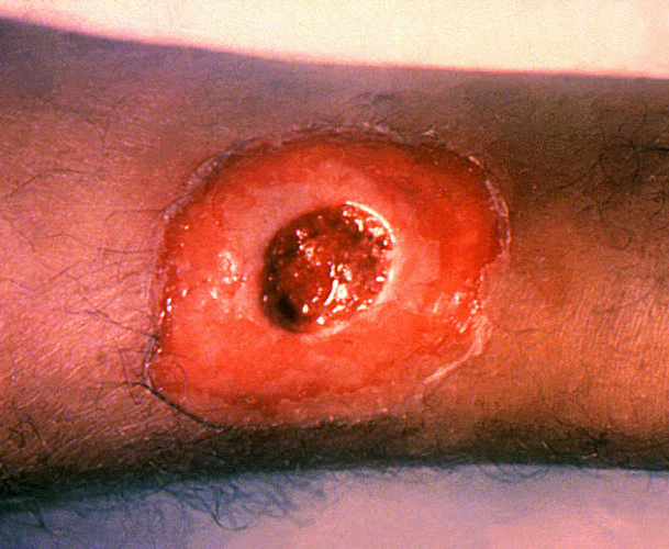 The bacteria produce a poisonous substance, also known as a toxin, which damages tissues such as the skin or lungs. The location of the infection determines which symptoms the patient will experience. The time between infection and the first symptoms appearing is usually 2-5 days, never longer than 7 days.
