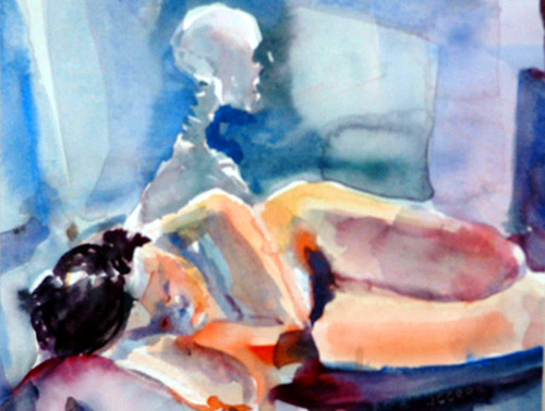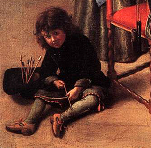 The painting of Venus and Adonis on the wall and the boy playing with a bow and arrow—a contemporary version of Cupid—are clear indications that a love affair is the cause of this illness.