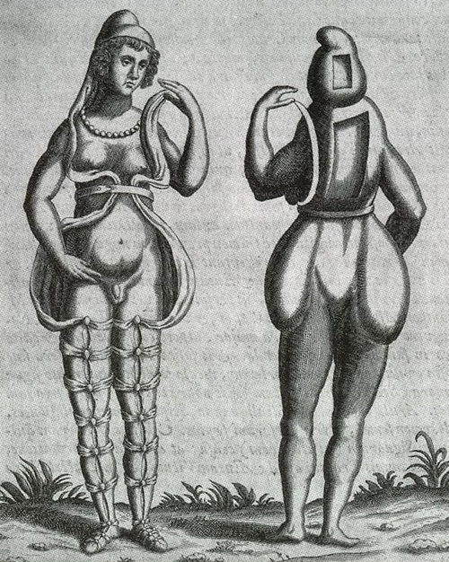 her domestic duties, the latter is a symbol of hermaphroditism. On the pedestal is a Latin text telling the story of Magdelena, which begins with the words: ‘En Magna naturae miraculum’ (behold a great miracle of nature).