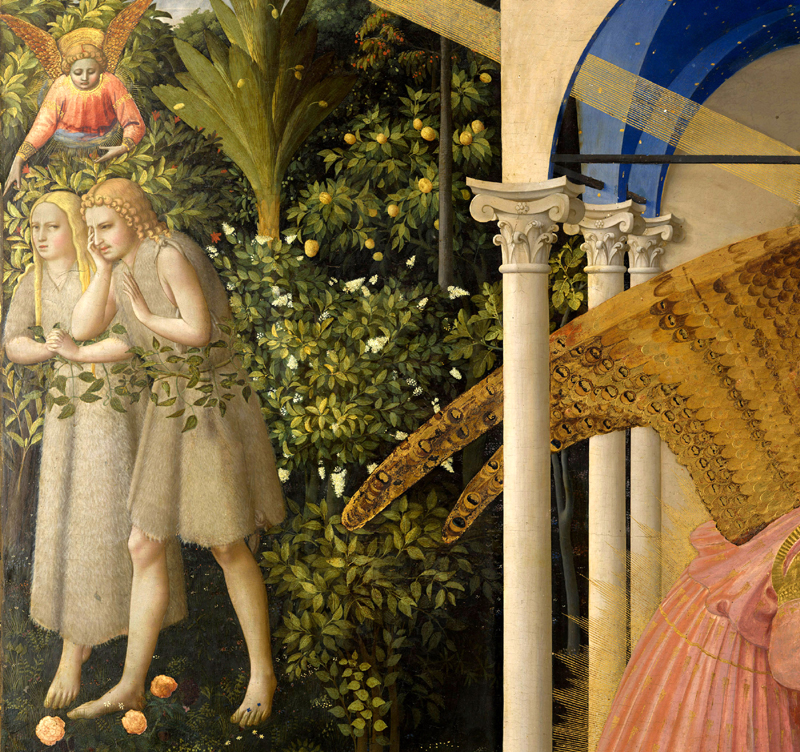 Fra Angelico brings the two scenes together here in a didactic manner. The broken Old Covenant between God and man is replaced by a New Covenant in the person of Jesus.