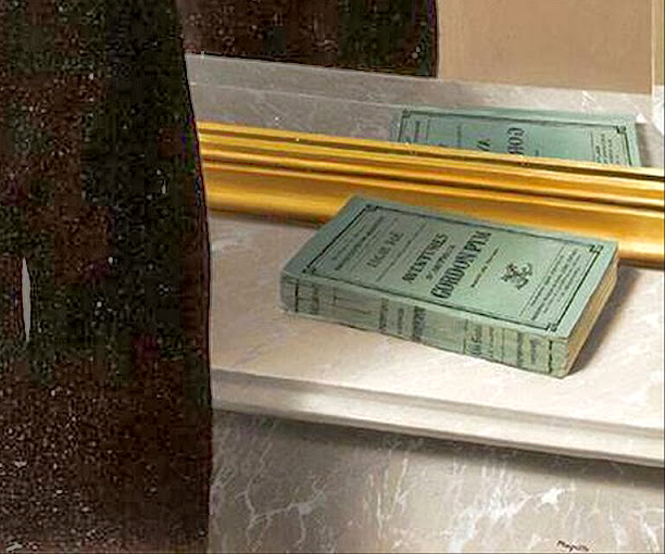 To add to the confusion, Magritte painted the book by Alan Poe, his favorite author, in mirror image.