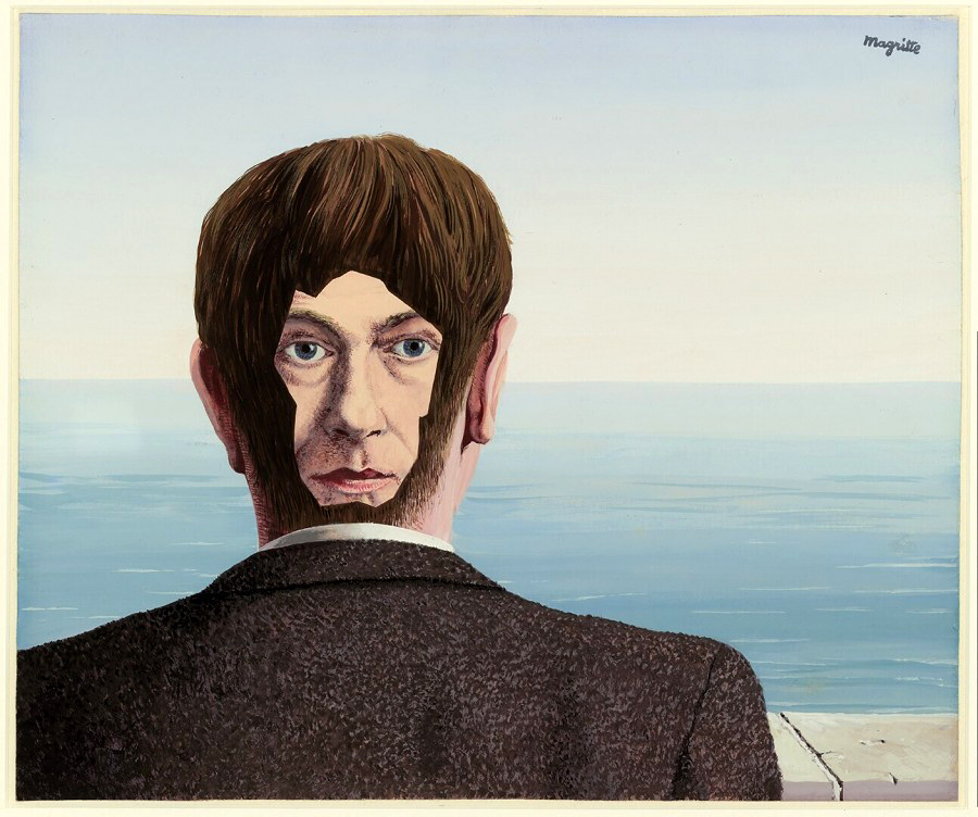 Edward James was a wealthy English aristocrat and surrealist poet. In the 1930s, he supported Magritte and Dalí by purchasing their work. Magritte created this enigmatic portrait of him. We see Edward James from behind, standing in front of a mirror. In it, he sees the same thing we see, namely his backside. Of course, that is impossible.