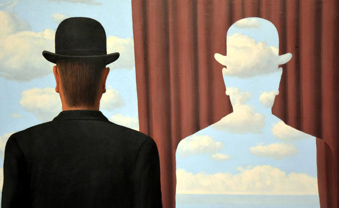Magritte believed that people “always want to see what is hidden behind what we see.” This painting is an interpretation of that idea. What is impossible in reality—looking in a mirror and seeing the back of your own head—is possible in a painting. These kinds of incongruous images are characteristic of surrealism.