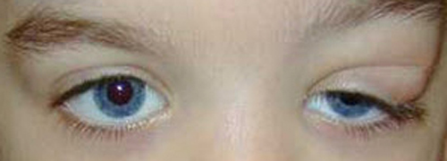 Main symptoms: a swollen left upper eyelid, which pushes the eyebrow upward and closes the eye